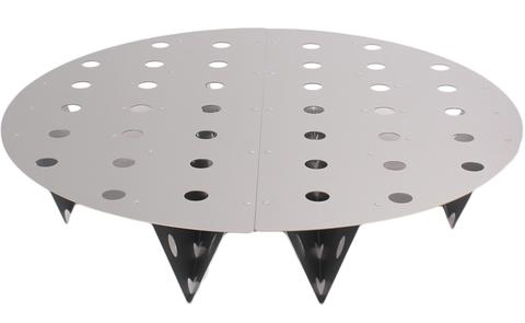 Plinths are used for vapour phase vessels to stop items being placed in the liquid. Plinths are supplied in two halves and placed on the base of the vessel. Plinths are available in aluminium or stainless steel and have holes in to allow the vapour to circulate effectively around the vessel.